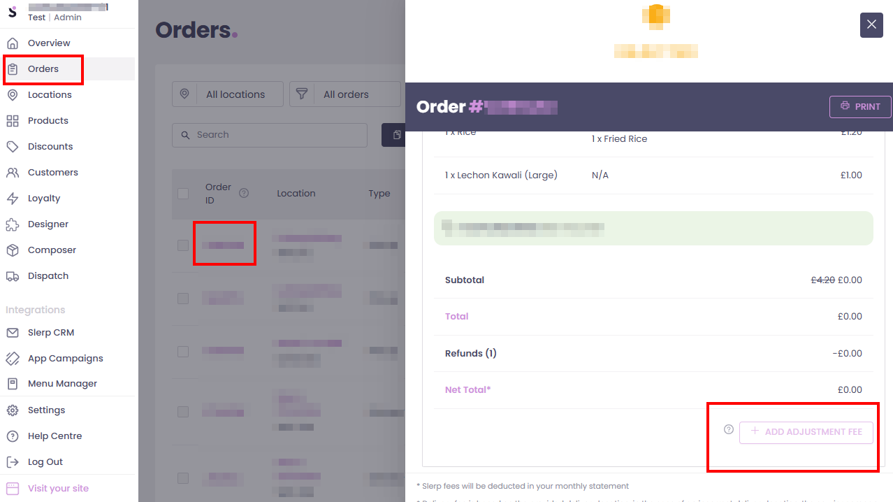 Login as admin to Controls Dashboard â Orders tab â Find and Select the order you want to add a fee/adjustment â Scroll down, then click the Add fee/adjustment button.