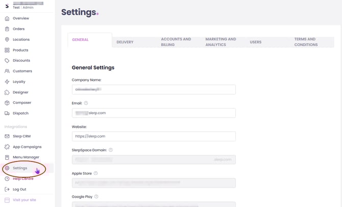 - From the main navigation panel, select ‘Settings’ to access your key administrative features.