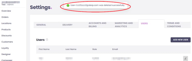 - Once the user has been removed, a confirmation message will appear. As a best practice, review your user list once again to ensure accuracy and communicate any changes to your team to maintain transparency and account security.