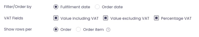 Within the Order Summary, filtering options are more robust. Alongside setting date ranges, you can adjust the Order By criteria, arrange Row Orders, and choose which VAT fields to display.
