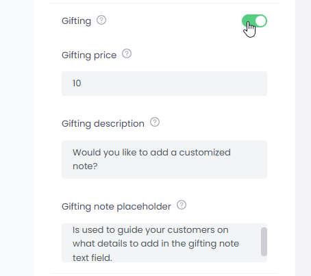- Set the gifting note placeholder – add example text to guide customers on what to write in their gift note.