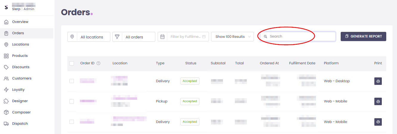 - Use the Search bar to quickly locate the order by entering the Order ID or customer’s email.