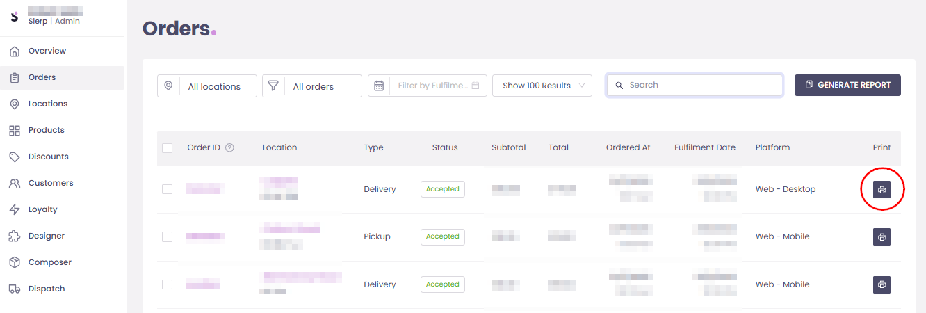 Easily print or download your order details/receipt directly from the Slerp Controls Dashboard.