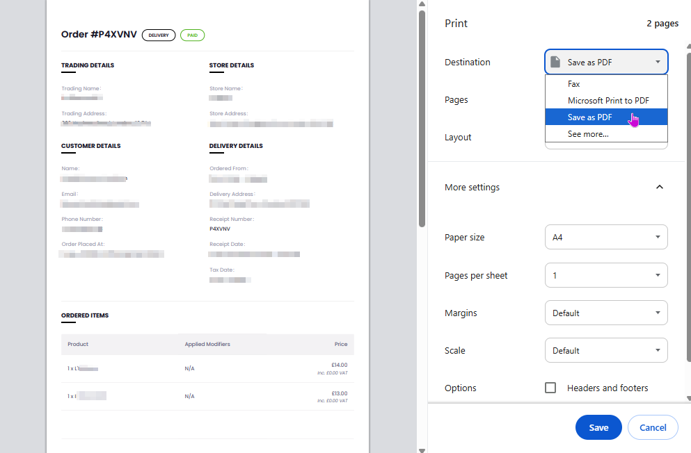 Adjust printer preferences as needed, then confirm to print or save.