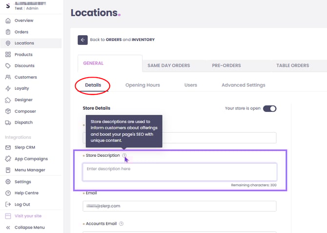💡 An effective description for each of your store locations can significantly boost SEO traffic to your page.