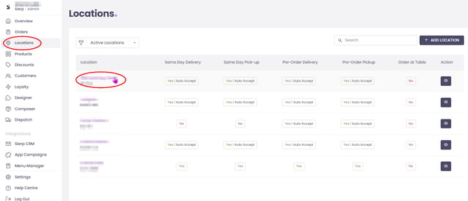 1. Login as Admin user on your Controls Dashboard and go to 'Locations' tab. Select the location name to edit.