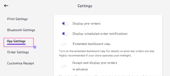 Use Accept and display pre-orders in advance = ON if you want to accept pre-orders as soon as customers place them and (optionally) auto-print dockets on acceptance.
