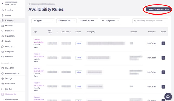 - On the ‘Availability Rules’ page, click ‘CREATE AVAILABILITY RULE’ then ‘CATEGORY CUT-OFF’