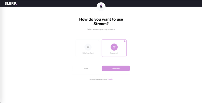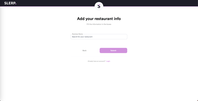 - If you already have a Slerp Menu & Order Manager account, click the Login page.