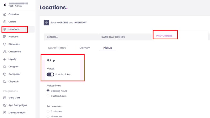 Log in to Controls → Locations → Select the location to edit → Settings → Pre-orders tab from here you can customise to what works best for you.