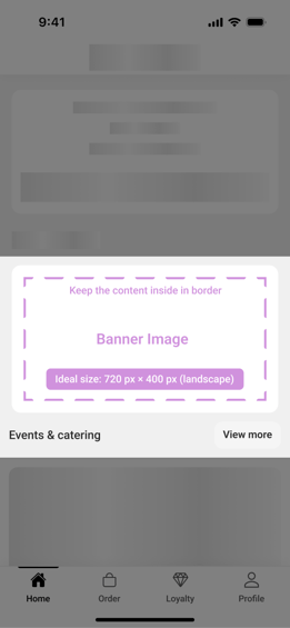 Create custom content on your app's home page. Use this section to promote in-app sections or link to external pages (such as your website's homepage).